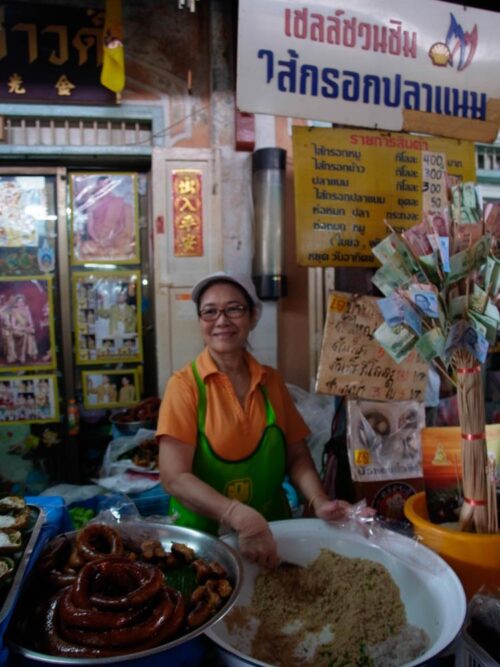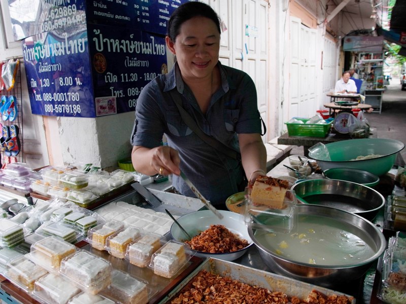 Nang Loeng Market is famous for its traditoinal dishes and dessert. Many food vendors in the market are famous in both their traditional recipes and taste, such as beef noodle, duck noodle, wonton noodle, rice with Thai curry, rice with roasted duck, roasted pork and crispy pork, and Thai traditoanl desserts but highly recommended dishes are Khao Chae, Khao Tang Natang, and Saikrok Planaem, a rare traditonal snack.